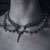 Anchored by a central ring, a sleek spike pendant adds an edgy focal point, while the ajustable chain at the back ensures a comfortable, tailored fit.
